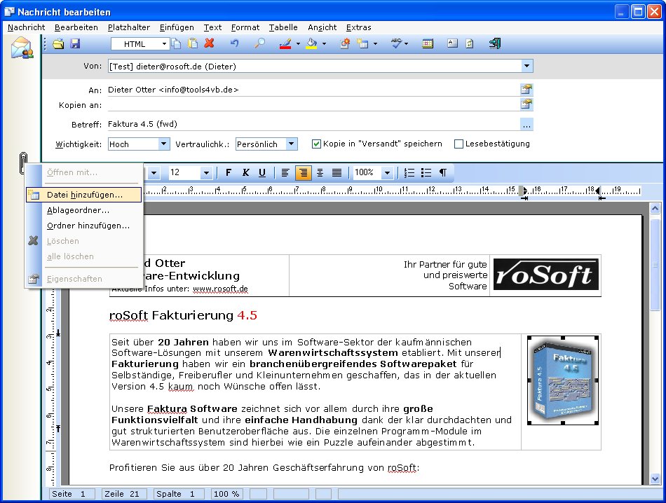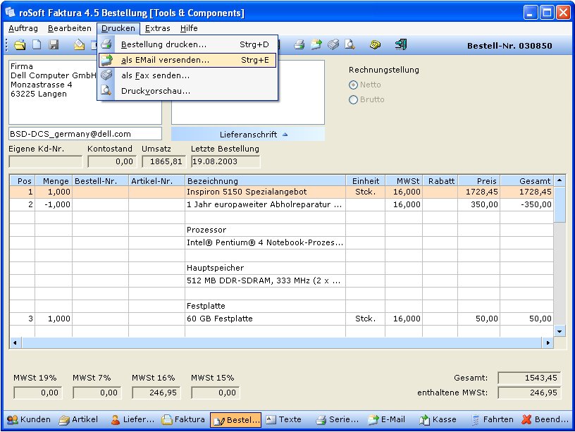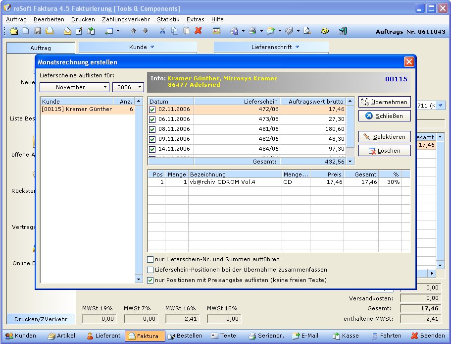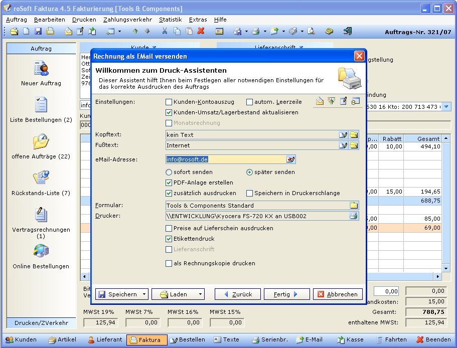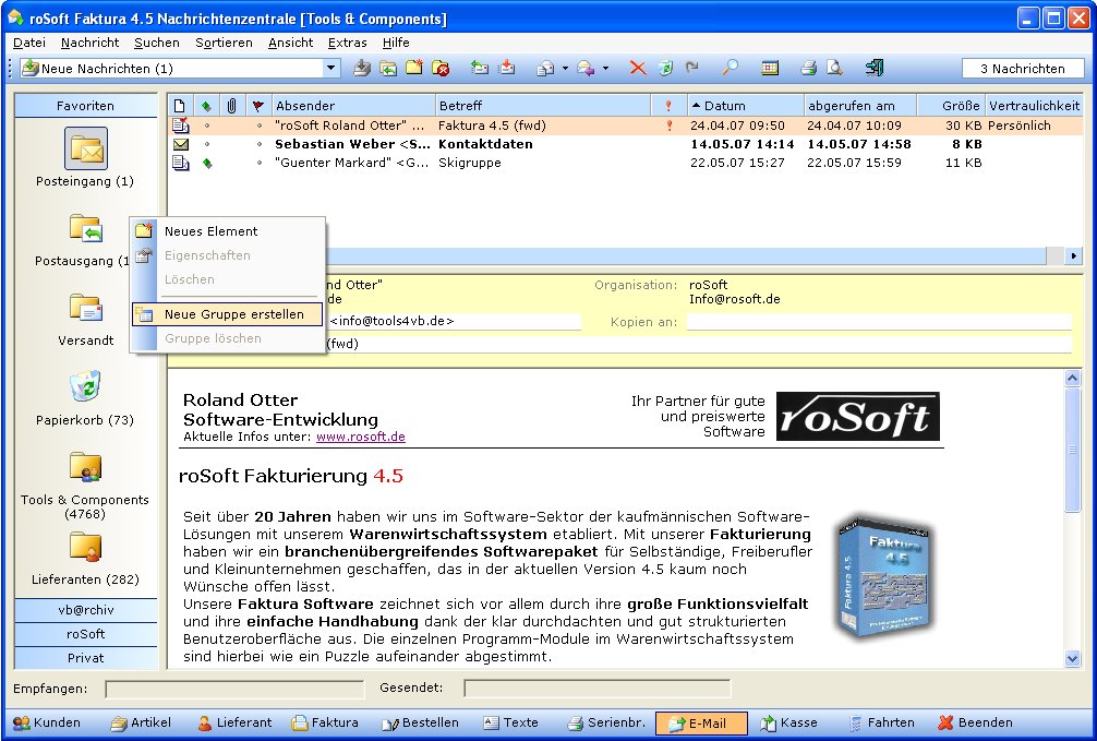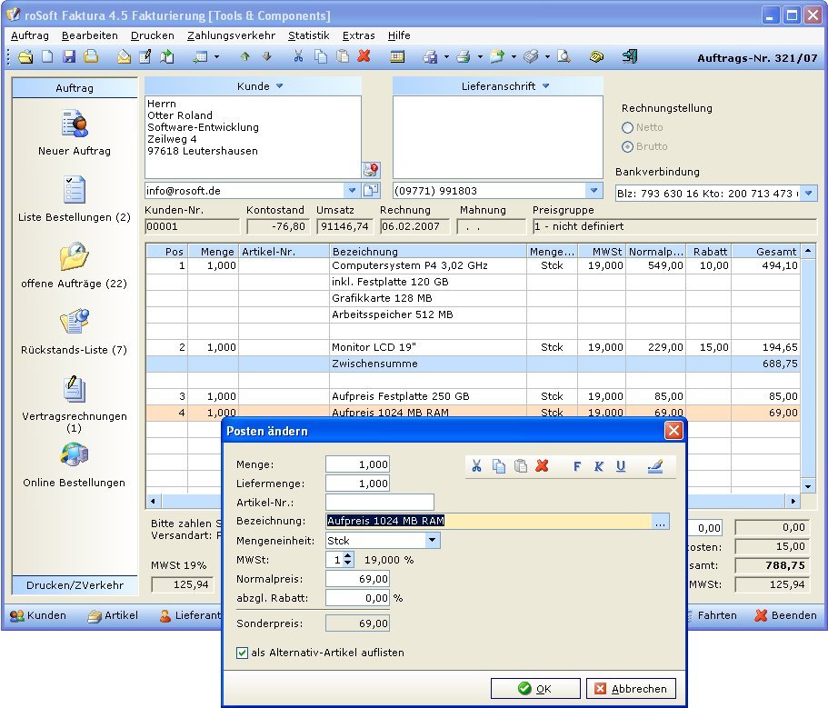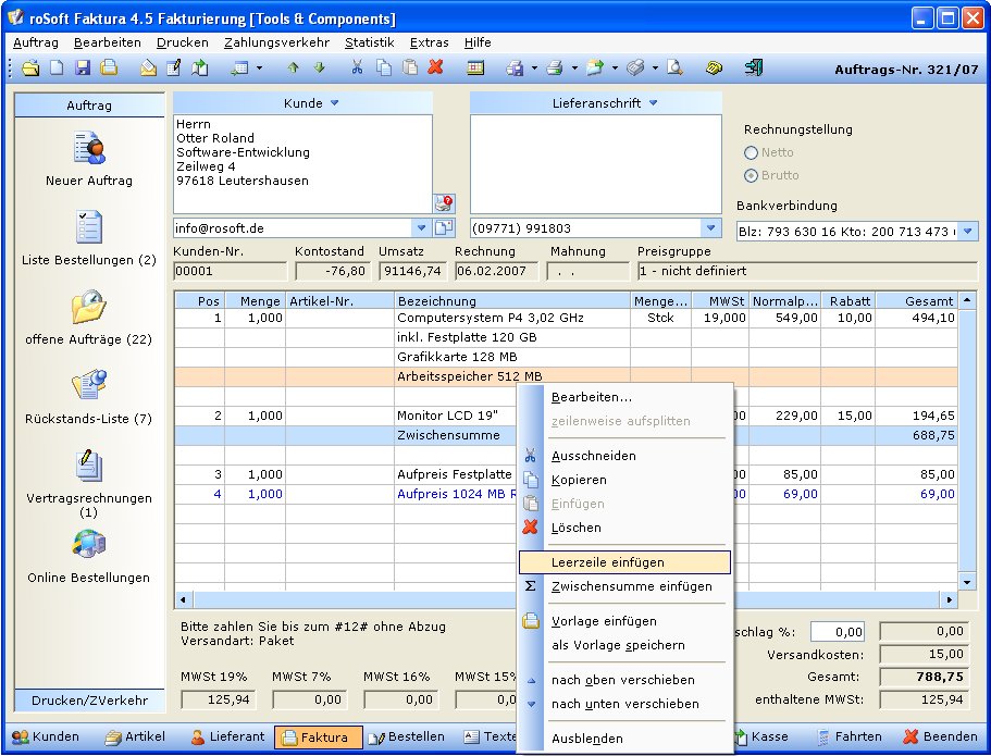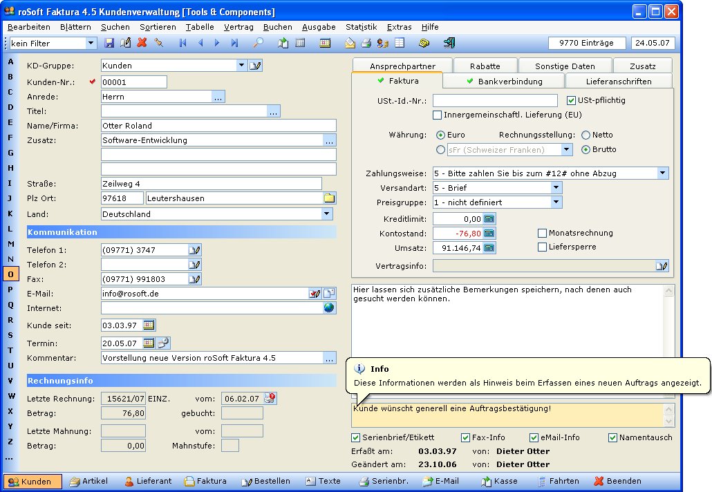 Aus diesem Grund haben wir Ihnen hier eine kleine Bilder-Galerie vorbereitet, aus denen Sie sicherlich schon die ein oder andere interessante und für Sie wichtige Information über den Leistungsumfang von roSoft Faktura 4.7 entnehmen können.