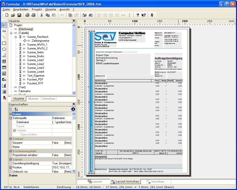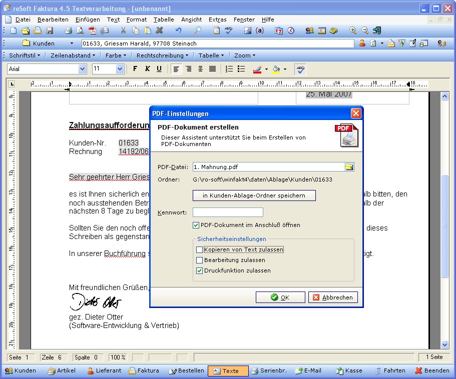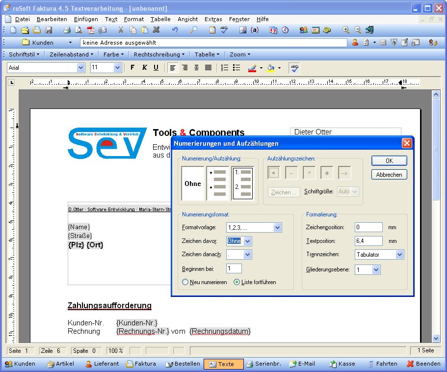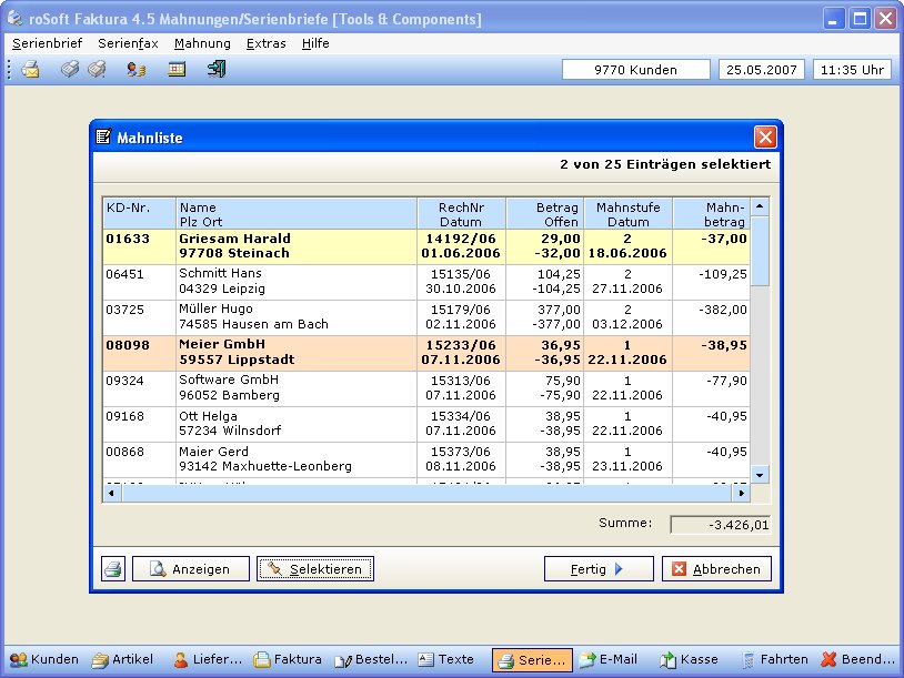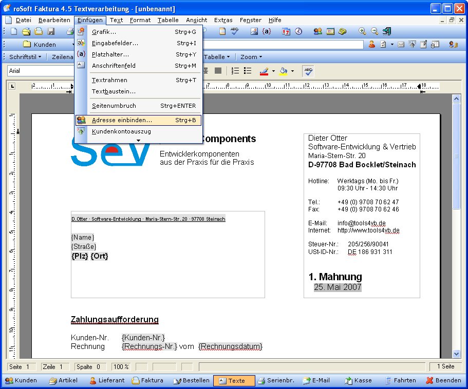 Textverarbeitung, Serienbriefmodul und Mahnungen